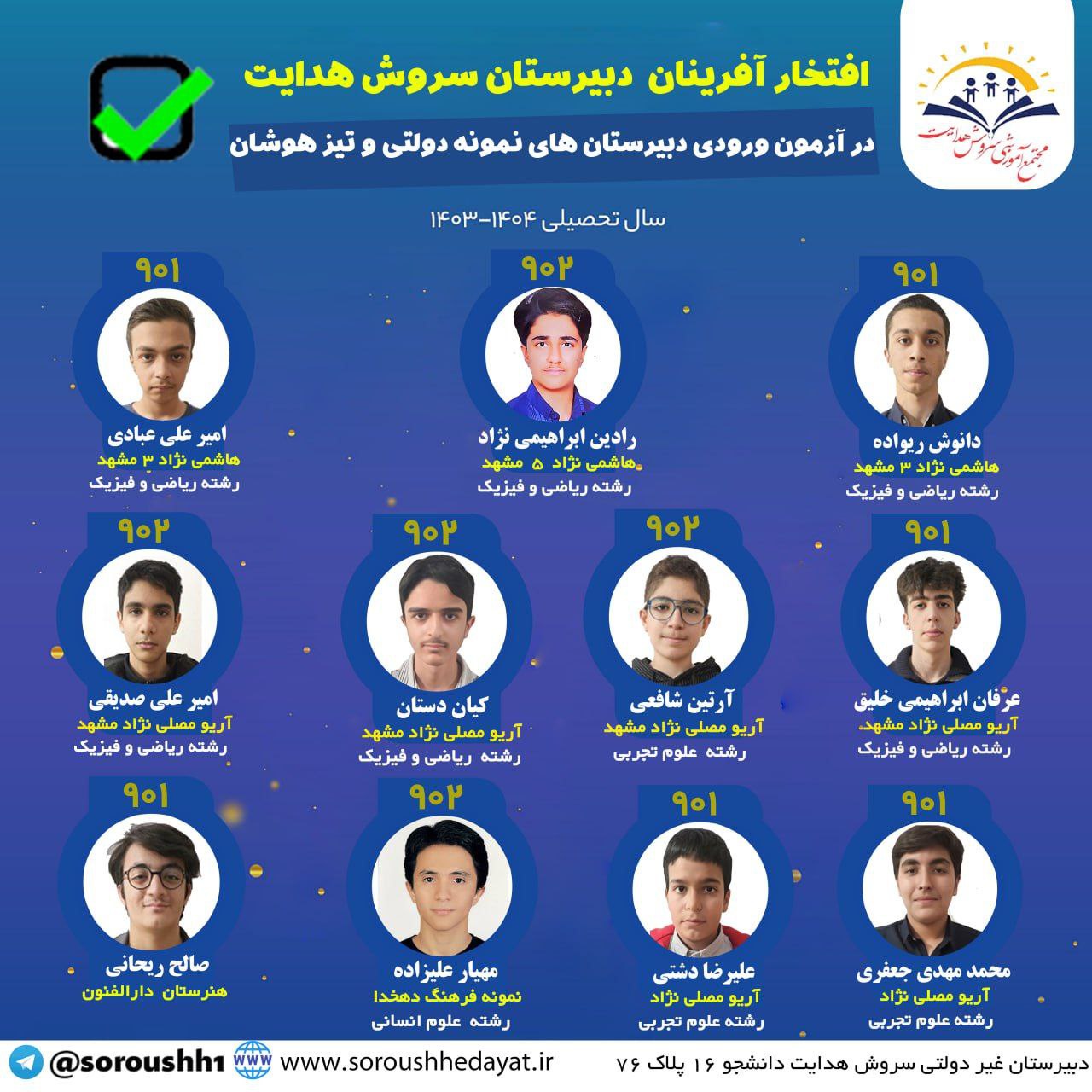 ????????????????????????مجتمع آموزشی سروش هدایتغیردولتی برتر ????????????کسب رتبه اول تعداد قبولی تیزهوشان و نمونه دولتی ورودی دهم در بین مدارس غیردولتی