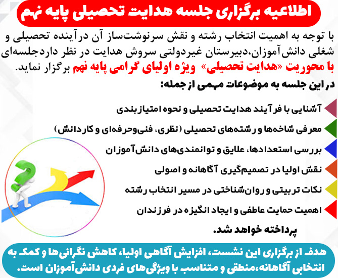 به اطلاع اولیا محترم و دانش آموزان عزیز می رساند:
